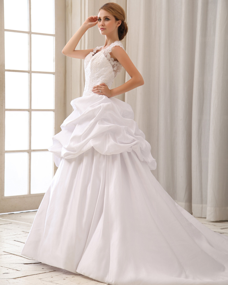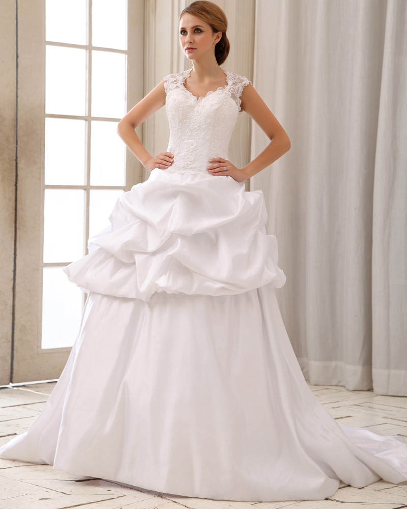 রোমান্টিক লেস ক্যাপ আস্তিন হ্যাল্টার নেক হার্ট আকৃতির ব্রা সহ বিবাহের পোশাক